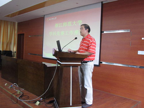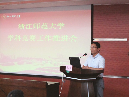 7月1日下午,2014年浙江师范大学学科竞赛工作推进会在7幢报告厅召开,各学院副书记、分管教学工作副院长、系主任、教务办主任、学工办主任,学科竞赛负责人、指导教师代表等齐聚一堂,交流学校近年来学科竞赛开展状况、指导经验,分析现状迎面挑战,探讨阶段方向。莅临本次会议的嘉宾有我校副校长李伟健、学生处处长吕迎春、团委书记童卫丰。本次会议由本科教学部主任赵雷洪主持。
