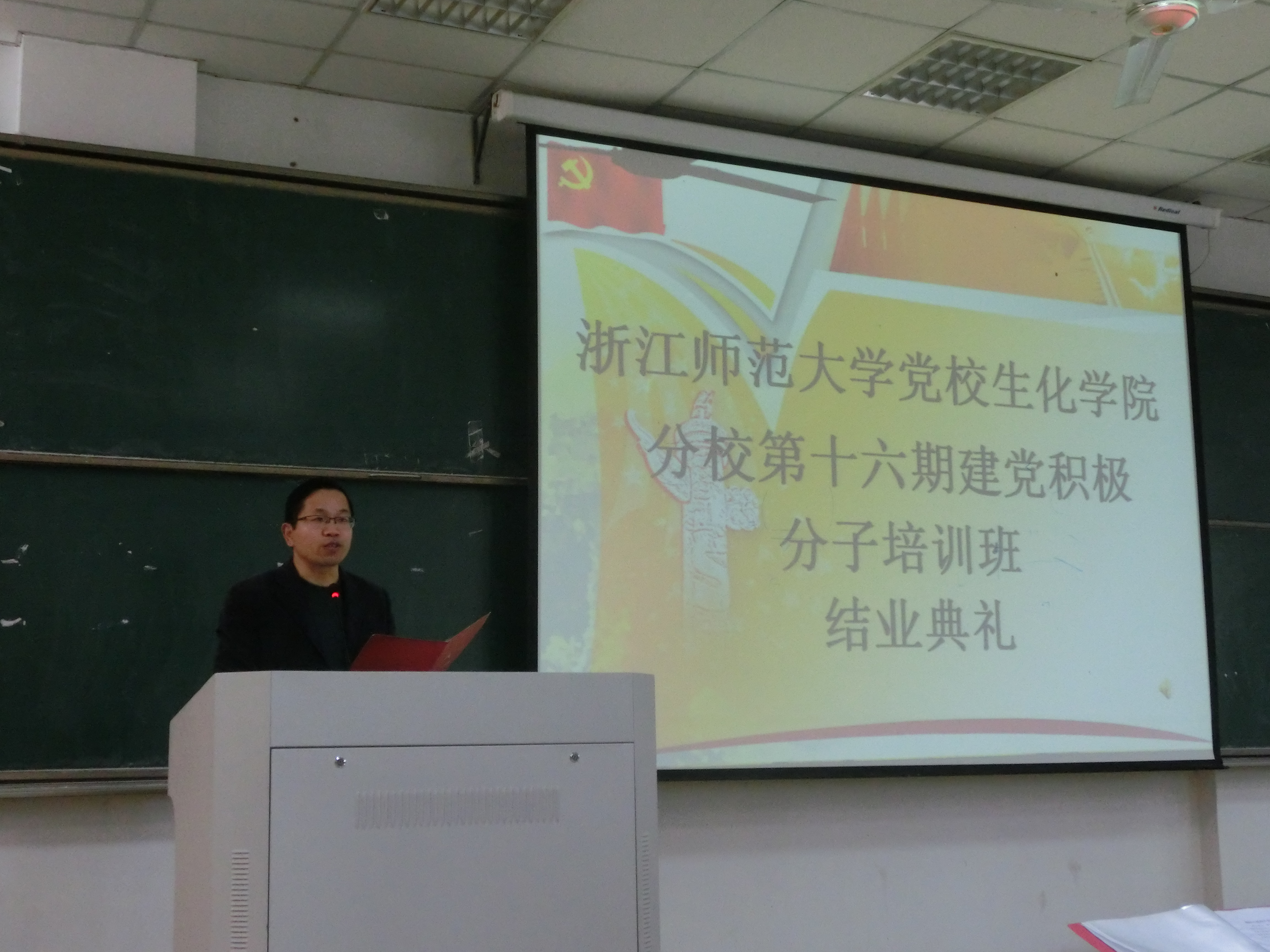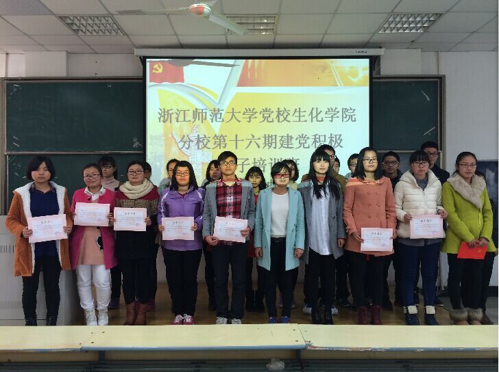 3月13日中午13时整,浙江师范大学党校生化学院分校第十六期建党积极分子培训班结业典礼于17幢212举行。本次结业典礼由生化学院团委书记王志海老师主持,生化学院党委书记徐建鹏老师、党委副书记马莉老师及学工办各位老师出席典礼。