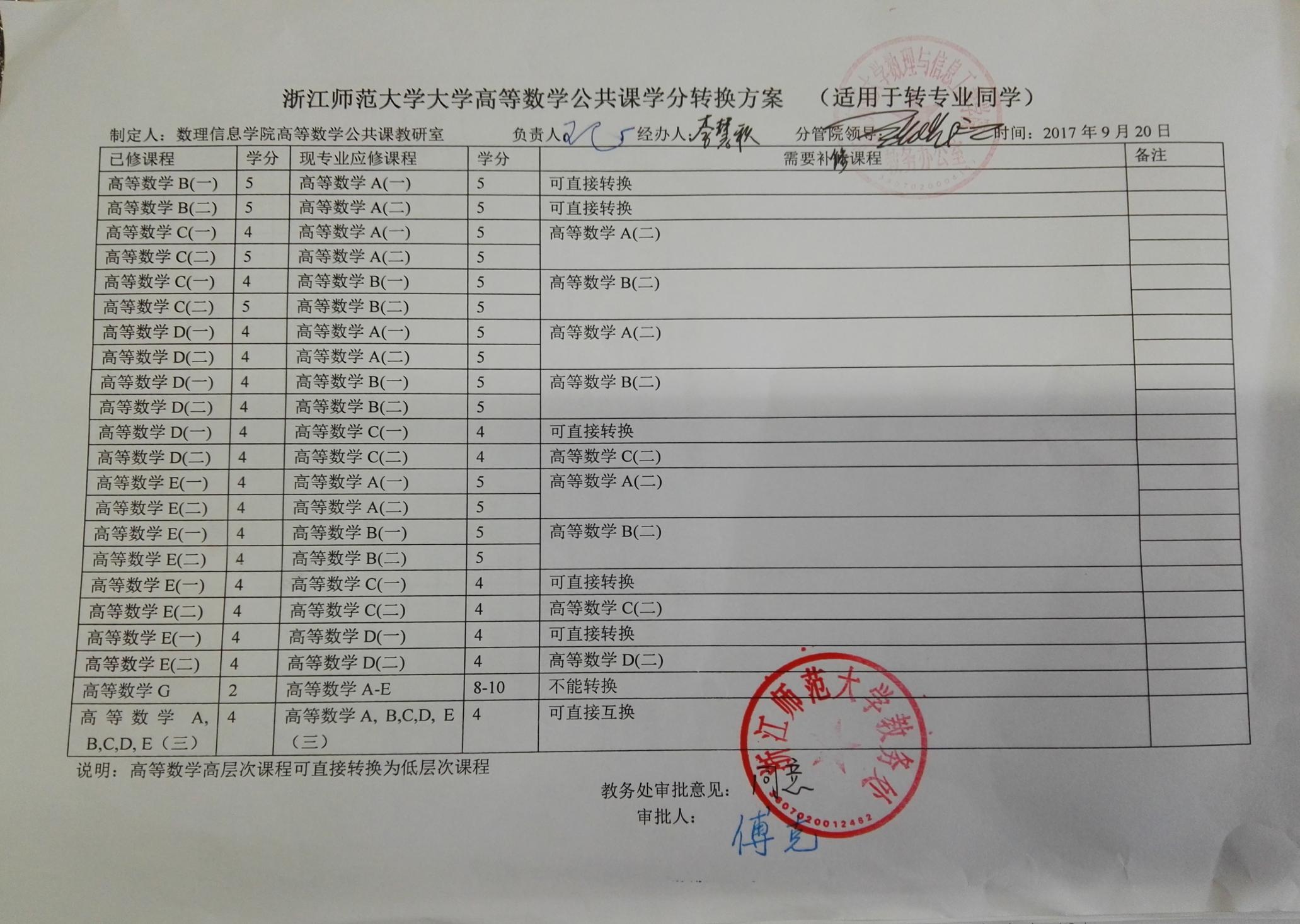 二、转专业同学原专业所修读的高等数学、大学物理转换参照开课学院提交的转换方案执行。详见附表3