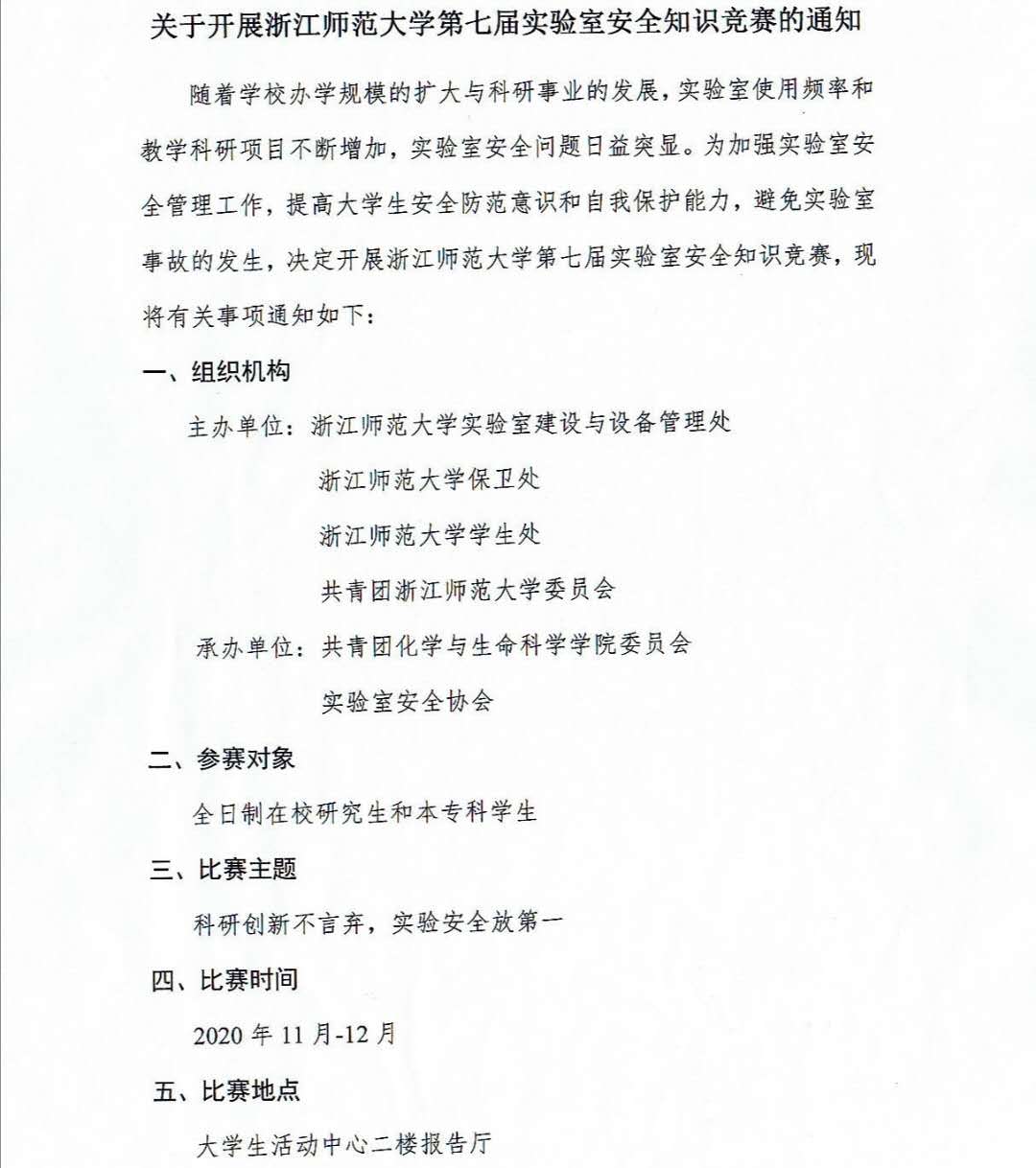 关于开展浙江师范大学第七届实验室安全知识竞赛的通知