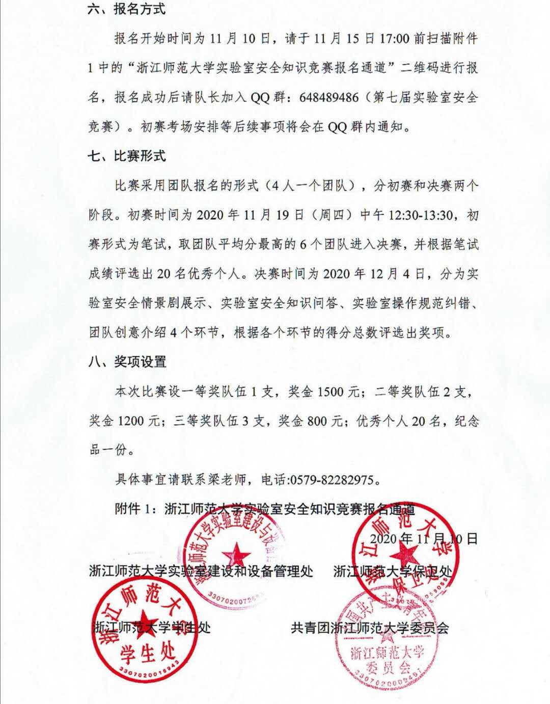 附件1:浙江师范大学实验室安全知识竞赛报名通道.doc