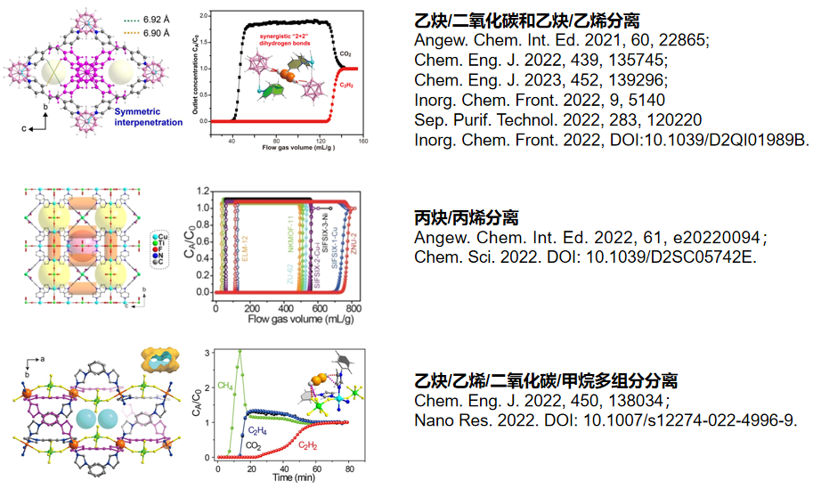 另外,课题组在乙炔/二氧化碳分离(Chem. Eng. J. 2022, 439, 135745; Chem. Eng. J. 2023, 452, 139296; Inorg. Chem. Front. 2022, DOI:10.1039/D2QI01989B)、乙炔/乙烯分离(Sep. Purif. Technol. 2022, 283, 120220; Inorg. Chem. Front. 2022, 9, 5140-5147)、乙炔/乙烯/二氧化碳/甲烷多组分分离(Chem. Eng. J. 2022, 450, 138034; Nano Res. 2022. DOI: 10.1007/s12274-022-4996-9)等重要挑战性气体分离领域取得有益进展。发表在Inorg. Chem. Front.的文章被选为内封面,通讯作者张袁斌博士入选2022年ICF Emerging Investigator(新锐科学家)。