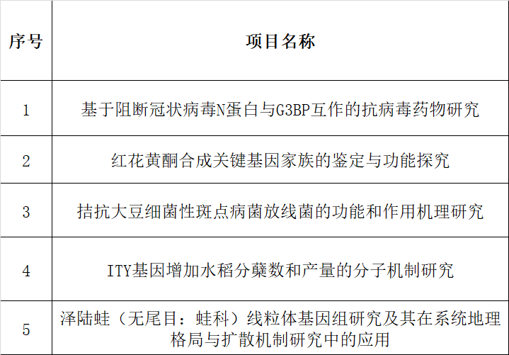 根据学校《关于申报2023年度国家级大学生创新创业训练计划项目的通知》相关要求,经学生申报,专家匿名评审,拟推荐以下5个项目,现予以公示,公示期:202358-5916点。如有问题,请反馈:生命学院教务办,联系电话:82282325,82283059