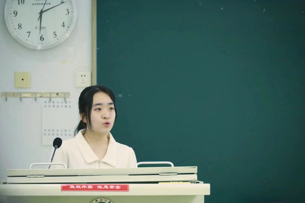 程子窈作为就业典型代表进行经验分享。程子窈就目前的就业形势、就业状况等展开分析,给毕业意向直接从教的同学许多与众不同的思考。