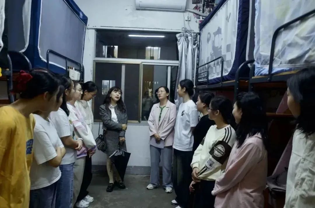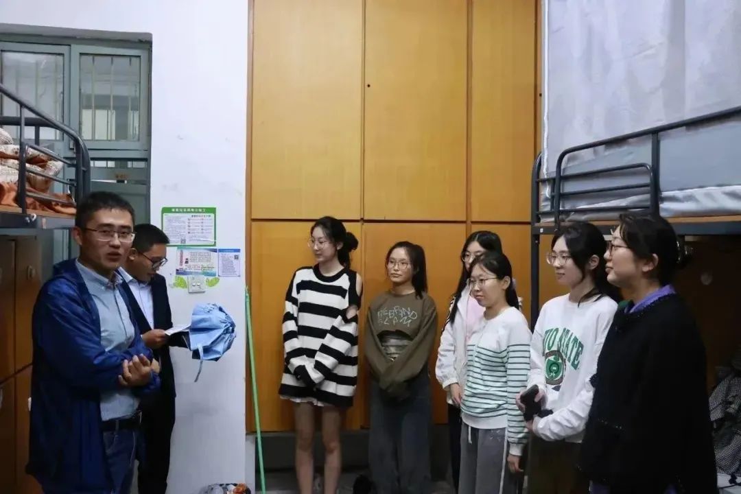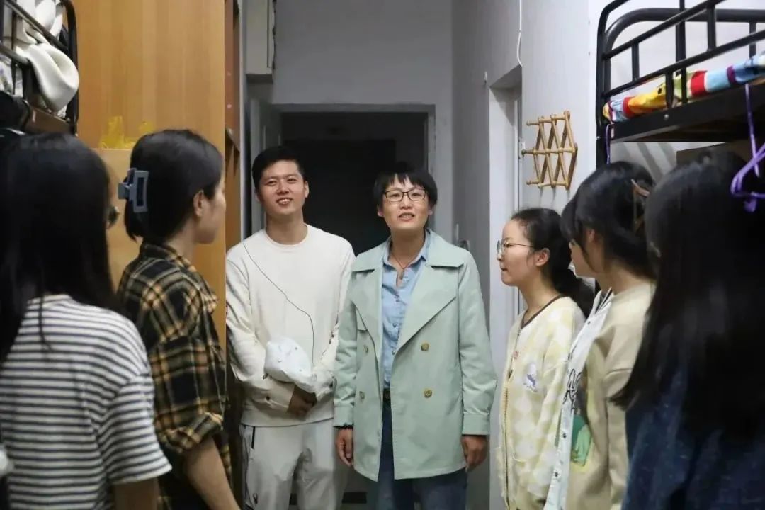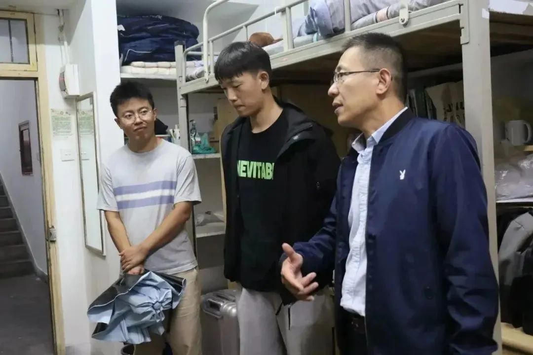 浙江太阳成集团tyc122cc入口院长孙梅好,党委书记苏煜,党委副书记朱慧,副院长杨冬梅、宗宇也在辅导员的陪同下来到新生公寓,看望慰问2023级新生。