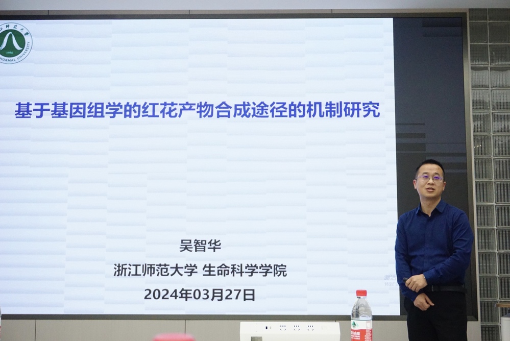 赵江哲老师以“细胞分裂素运输机理研究进展”出发,从微观研究细胞分裂素,是为宏观层面上增强植物的生长效能;吴智华老师作题为《基于基因学的红花产物合成途径的机制研究》的研究报告,从遗传水平上解析了红花亚油酸和类黄酮合成基因的分子机制,是为宏观层面上提升其对人体的健康价值。