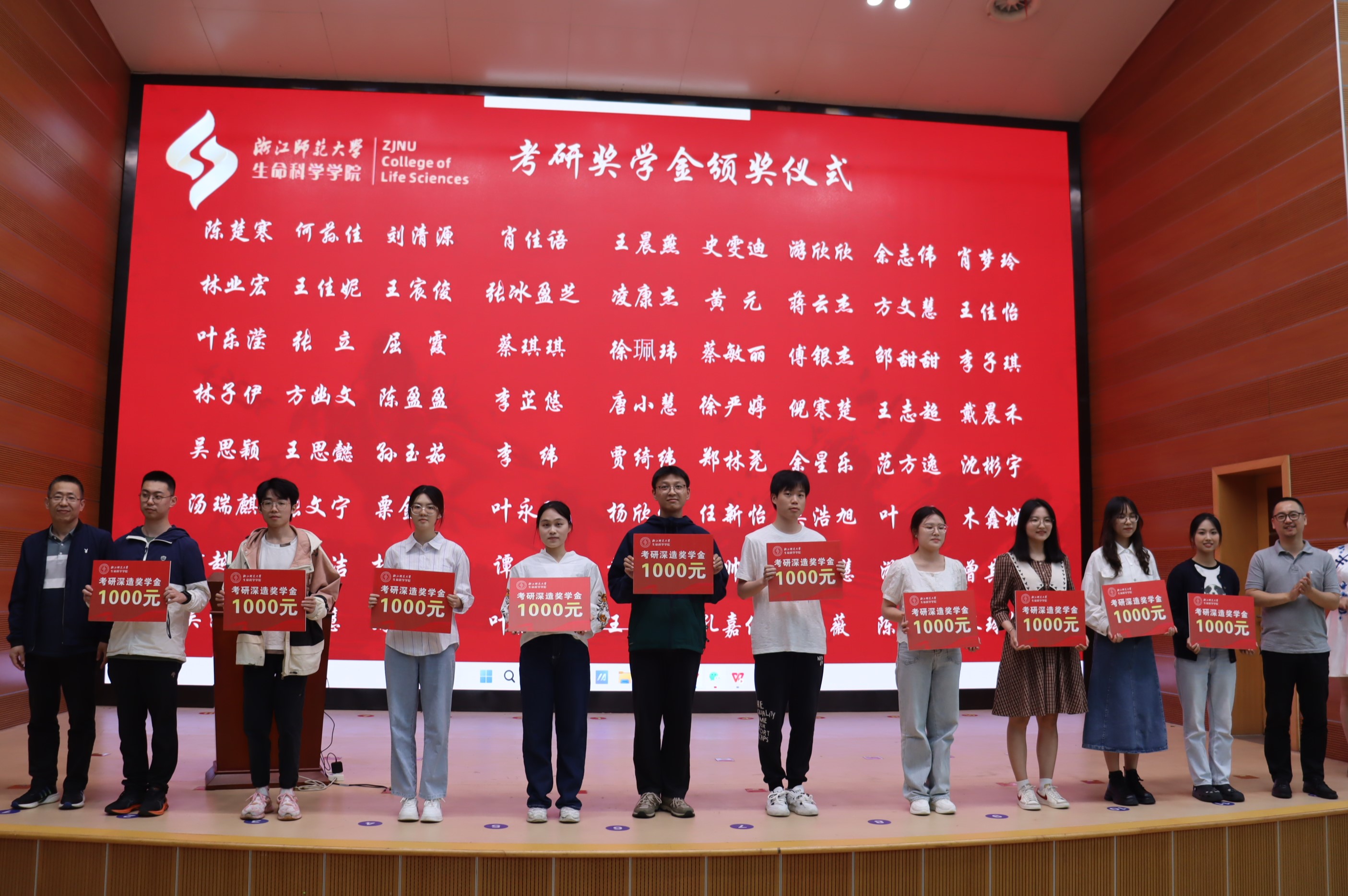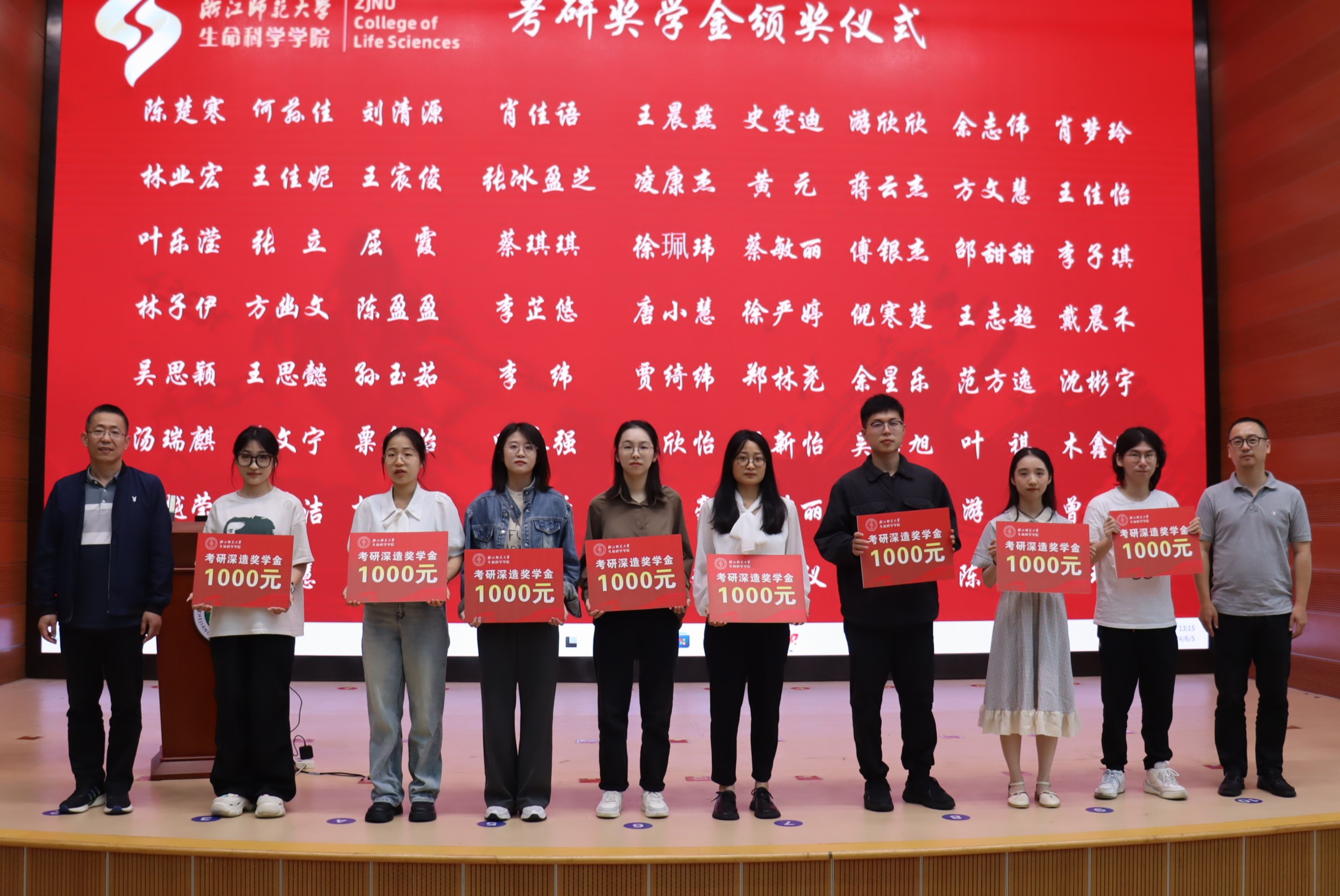 生命科学学院院长孙梅好、院党委书记李恒为优秀毕业生颁发考研奖学金。