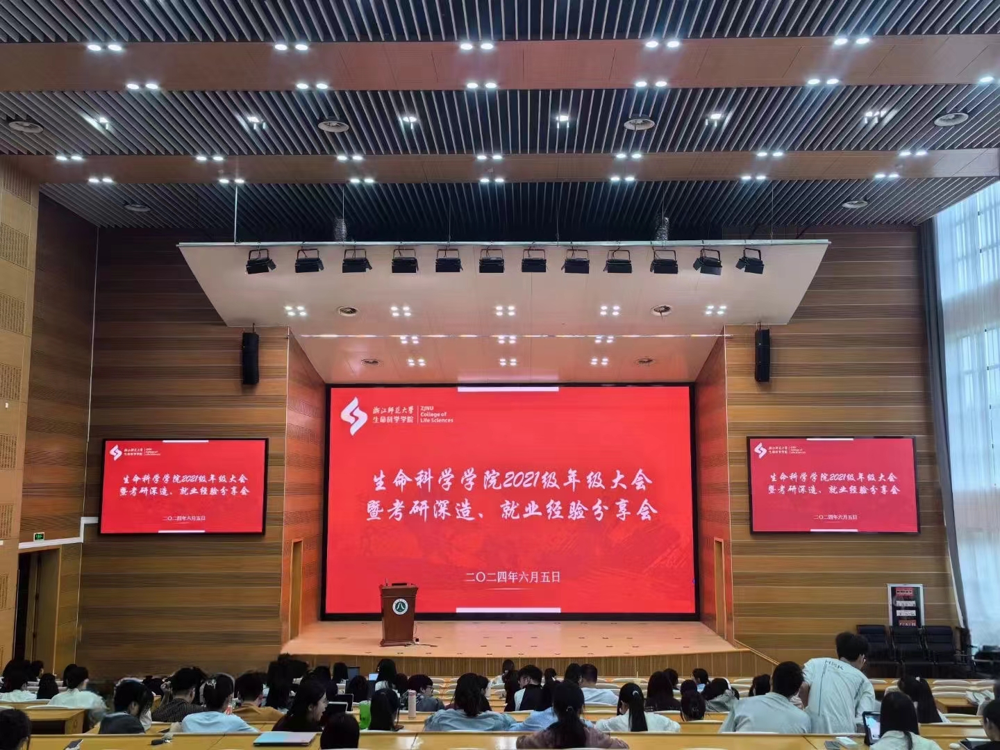 为鼓励2021级本科生考研深造、确定职业规划,部署毕业相关日程安排,202465日下午,生命科学学院2021级年级大会暨考研深造、就业经验分享会在行政中心报告厅举行。生命科学学院全体班子成员、各系主任、2021级各班班主任、行政各办公室主任、全体辅导员,2021级本科全体同学及2020级奖学金获奖代表参加会议。院学工办主任周颖主持会议。