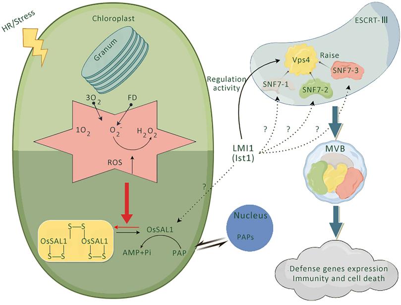 Fig. 6 – Possible pathways by which LMI1 regulates disease resistance immune responses and cell death.