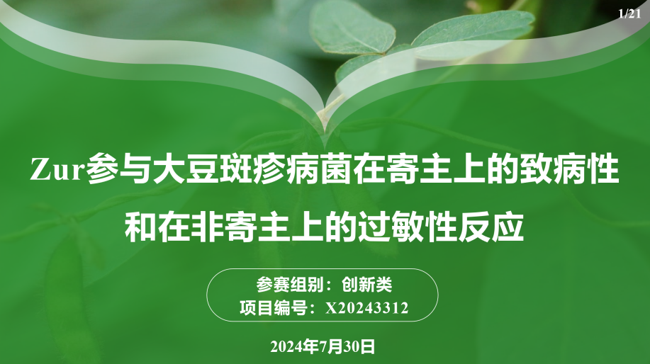 锌吸收调控蛋白(Zur)是植物病原黄单胞菌的重要转录调控子。Zur在不同黄单胞菌中的基因序列高度保守,但功能却差异显著,表现出菌株或生理小种特异性。引起大豆检疫性病害的大豆斑疹病菌(Xag)是6大主要植物病原黄单胞菌之一,但其Zur的功能却尚无报道。因此本研究以Zur为切入点,明确了ZurXag()寄主植物互作中的功能。在先前Zur功能研究的基础上,本研究进一步拓宽了植物病原黄单胞菌Zur的功能谱以及调控网络,并为植物与黄单胞菌互作共进化的理论注入了新内涵。