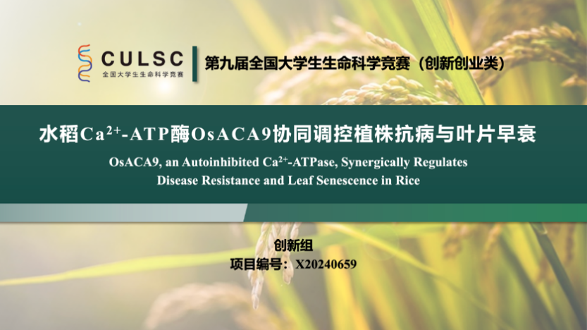 Ca2+是植物中至关重要的第二信使,参与了生长发育、胁迫响应等多个生物学过程。在植物免疫领域,Ca2+被认为是参与植物免疫两道防线的核心因子。深入解析细胞内Ca2+稳态的调控机制,对培育高产、抗病的作物新品种具有重要的指导意义。自抑制型Ca2+-ATP酶(ACA)家族,是植物中一类精细调控钙离子外排,以维持细胞内钙稳态的离子泵。本项目通过遗传进化分析和组织表达分析,筛选获得潜力基因OsACA9,利用CRISPR/Cas9技术构建基因敲除突变体,通过表型鉴定和转录组分析研究基因的生物学功能及其背后的分子机制。本项目揭示了新基因OsACA9在植株抗病和早衰过程中的双重生物学功能,提出了由Ca2+-ATPOsACA9介导的“生长与免疫平衡”理论模型。在未来,深入挖掘ACA9这一优异基因,将为水稻抗病育种及早衰调控提供新的策略指导!