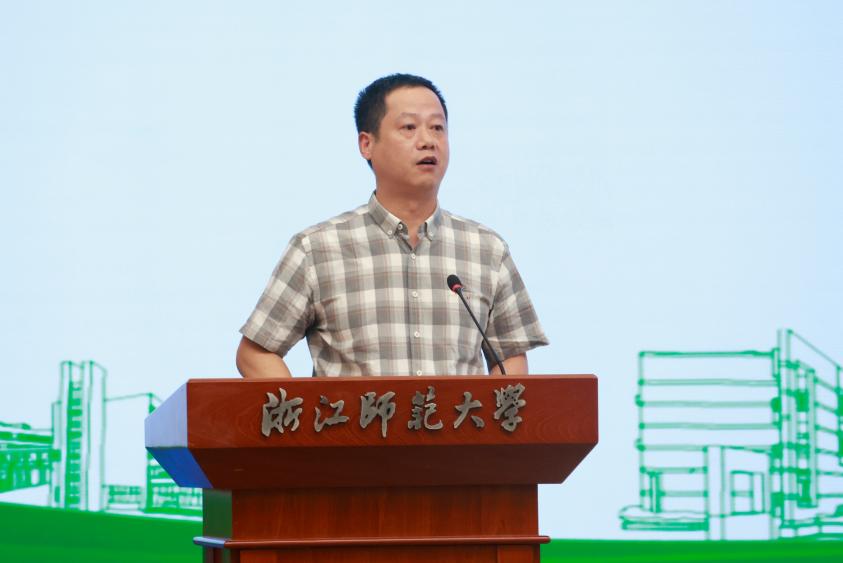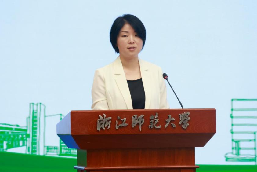 王杏蓓介绍了金华市农业现代化工作情况,并对浙师大在农业科学领域所提供的科技支撑、人才支持以及科学普及表示感谢。她希望此次研讨会进一步促进国内外学术交流,为农业现代化提供宝贵的经验分享和合作机会。