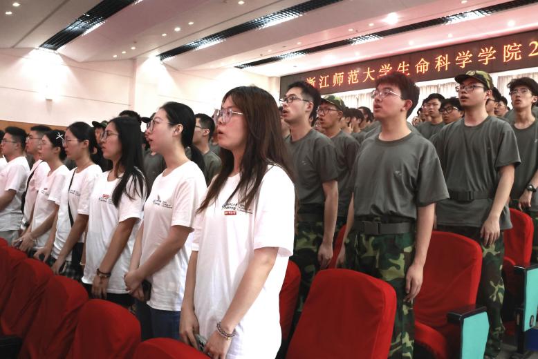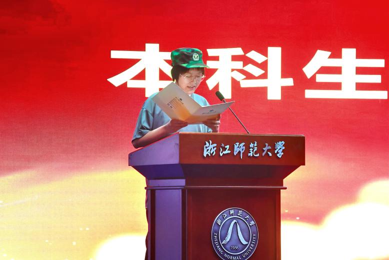 “立鸿鹄志,做奋斗者!”来自科学教育242班的沈纤作为本科生新生代表发言。她相信,同学们能在这片美丽的校园里绘制出属于自己的漂亮画卷,扬起理想风帆,挥洒绚烂青春。她与同学们共勉,希望大家能够肩负起未来的责任,担当起民族和国家的使命。