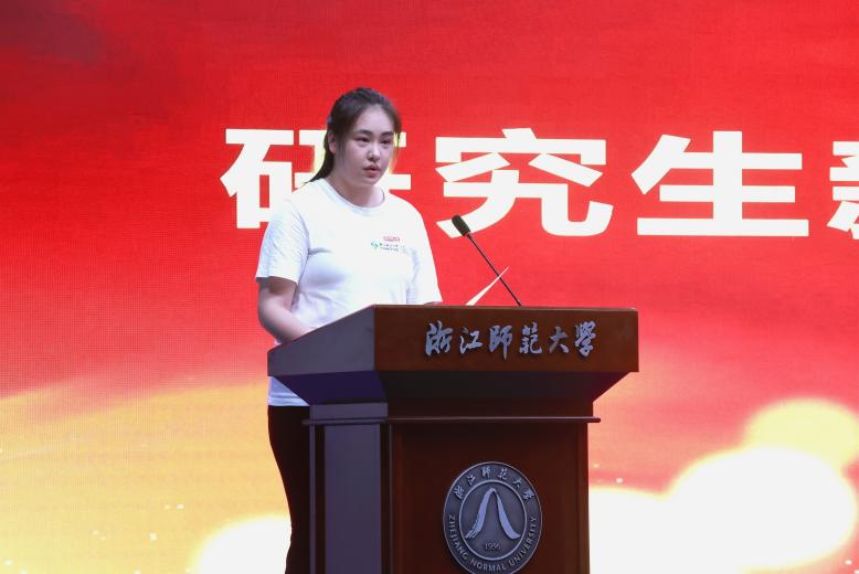 生态学张子妍作为2024级研究生新生代表发言。她分享了三点入学思考:一是轻舟仍需过重山,要学会坚持输出,将理论与实践结合;二是不坠青云之志,将自己的小我融入祖国和人民的大我之中;三是你当像鸟飞往自己的山,每个人都有属于自己的天空。张子妍希望大家能够以自己的面貌和心情在生命科学的领域之中做一个真实的研究者、实践者。