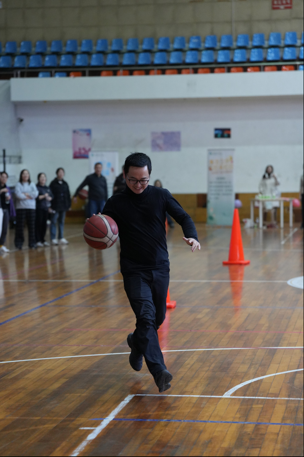 篮球接力环节,老师们身手矫健,运球、上篮一气呵成,篮球在他们手中传递着默契与信任。每一次进球都引发阵阵欢呼,赛场上洋溢着紧张而热烈的气息,大家为了团队荣誉全力以赴。