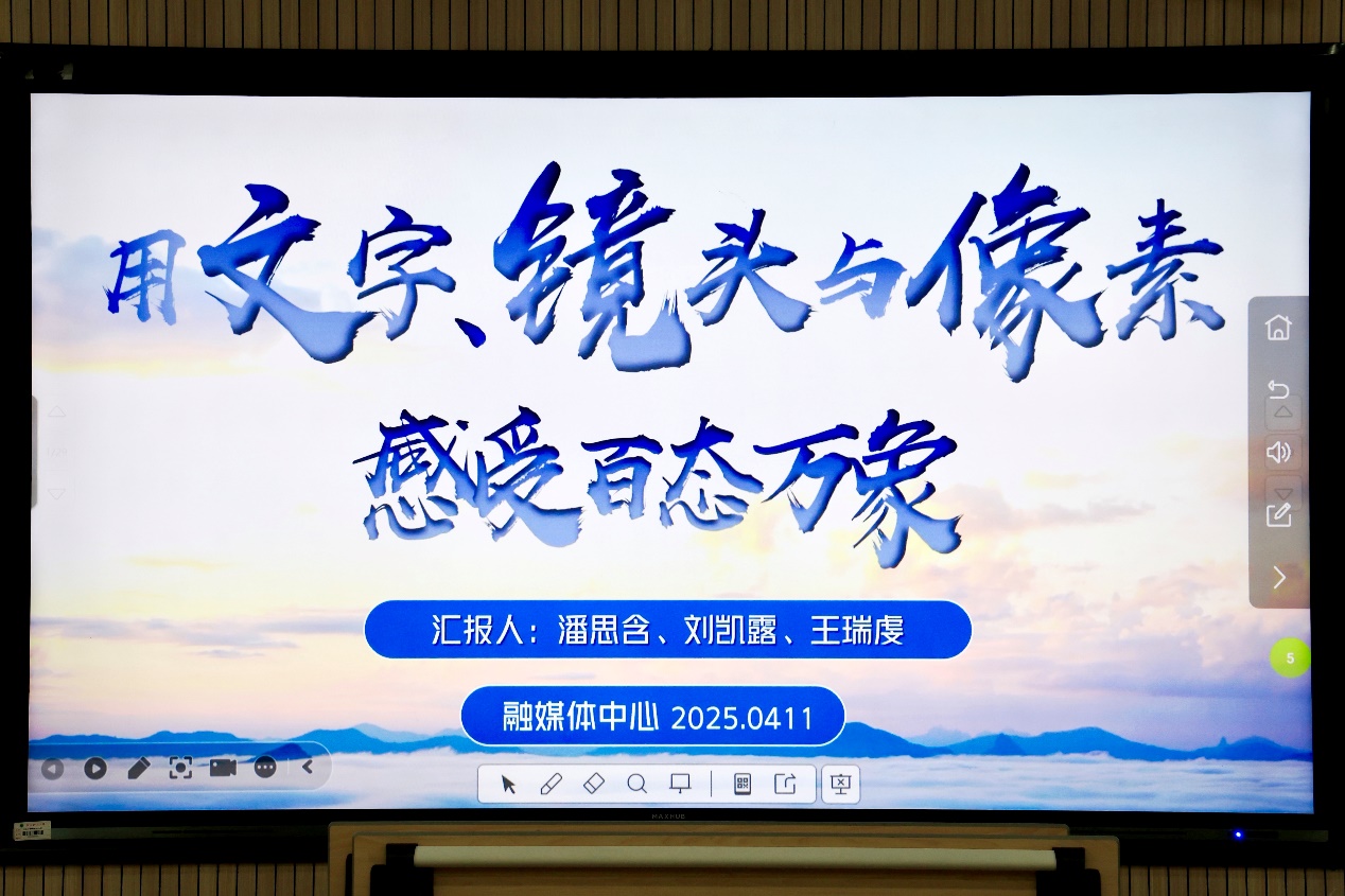 为了提高同学们对文字、摄影的把控力和PPT的制作能力,4月11日晚,浙江太阳成集团tyc122cc入口融媒体中心在22幢120室开展了以“用文字、镜头与像素感受百态万象”为主题的爱学会议室。融媒体中心新闻部副部潘思含、摄制部副部刘凯露以及设计部副部王瑞虔共同主持本次活动。