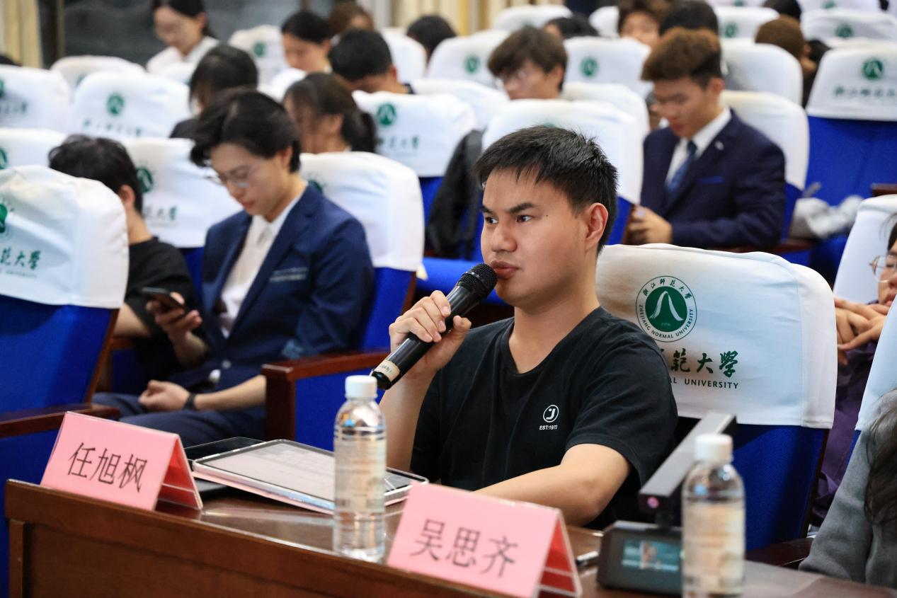 各组答辩环节结束后,任旭枫对本次大赛进行点评。首先,他对各位选手从初赛文本准备到到决赛答辩展示表示充分肯定,认为此次活动达到了同学们走出课堂、走入社会,更好地认识国情,从而更好地为国家的发展贡献自己的力量的作用。第二,在调研过程中,各成员在数据分析、论文撰写、团队合作等各项综合素质能力上都得到了极大的提高,将理论与实践相结合。最后,任旭枫向同学们提出了希望各位成员注意论文的格式规范,注意细节等有效建议。